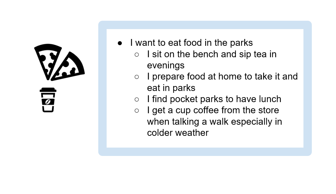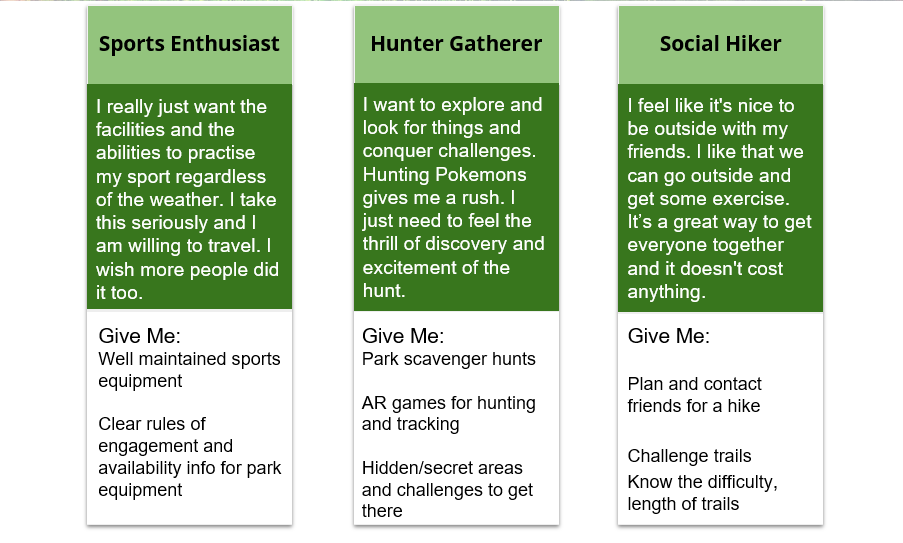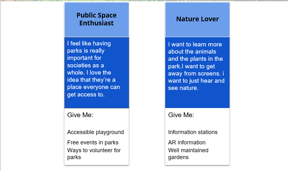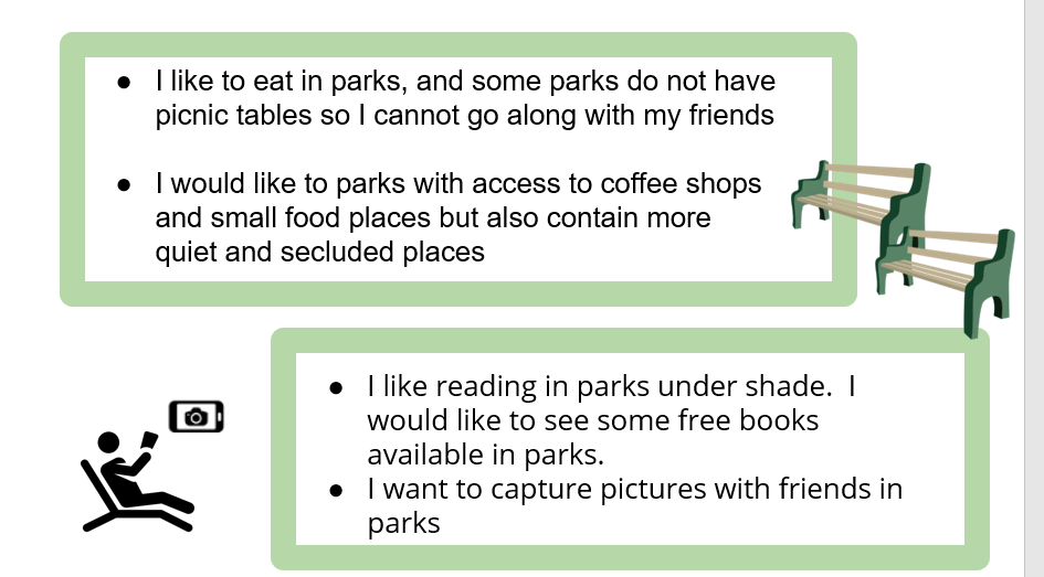 We created a deck of slides to present our findings to the clients. We also presented them with the data through our affinity diagram and affinity models. Our clients also engaged in the wall walk session after which we presented our product concepts with them. After internal discussions, our clients found Park Map App and Park Arts System to be most suitable for them. Here is an article on UMD’s iSchool website that talks about our product concept's presentation to the clients. Next steps for us include wireframing, iterative paper prototyping and testing with users and then high-fidelity prototyping.